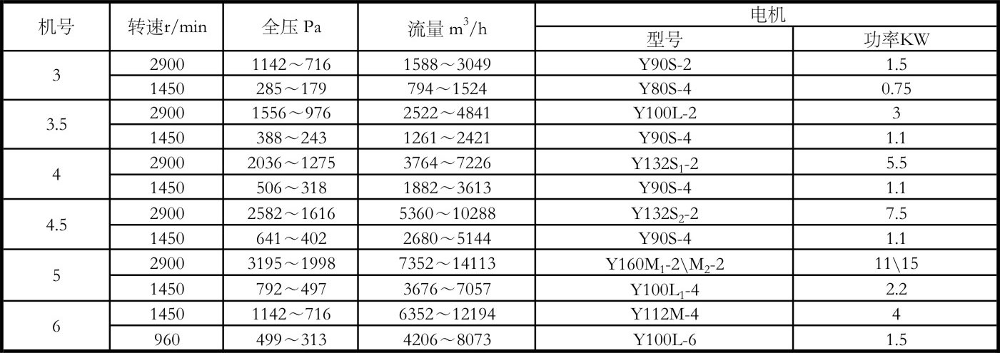 3、結構特點:8-09、9-12風機由葉輪、機殼、進風口、轉動組、密封件、機座等組成,對于8-09機號采用局部組裝機構,其他機號采用整體機構。