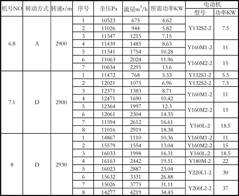 2、形式:8-09風機為單吸入,機號有No.6.8A、7.1D、8D、8.5D、9D共五種。
